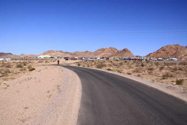 The early morning wasn't too busy, but as the day went on, more and more dealers and industry folks showed up to see what they could test ride in Bootleg Canyon. Temperatures had cooled down from the 108 and 109 temps of the last days to a more civil 99 degrees plus a good breeze made conditions a bit more comfortable. But the wind was less fun for the cyclists on the course and the vendors positioned on the dirt.