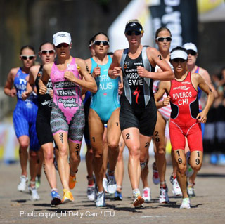 The 2010 Dextro Energy ITU World Championship Series opened with a shocker as little known Chilean triathlete Barbara Riveros Diaz took down last year’s top three triathletes in an exciting dash for the finish at Sydney. The 4-foot 11–inch Riveros Diaz, perhaps the shortest competitor on the ITU circuit, stood tall at the end after outrunning 2009 ITU world champion Emma Moffatt, who finished 3rd; World Championship Series bronze medalist Andrea Hewitt, who finished 2nd; and ITU WCS runner-up Lisa Norden, who finished 5th, by prevailing by one second in a tense, last lap duel for the Sydney crown.