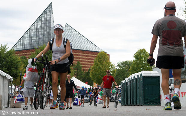 With the two Chattanooga Aquariums in the background, athletes checked in their bikes between 10am and 3pm.