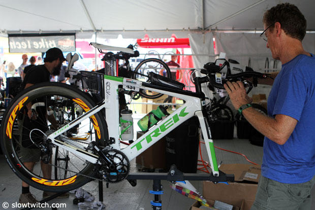 Velo Stop is the big shop here in the expo and Marc Lees is very busy here as athletes have many late concerns.