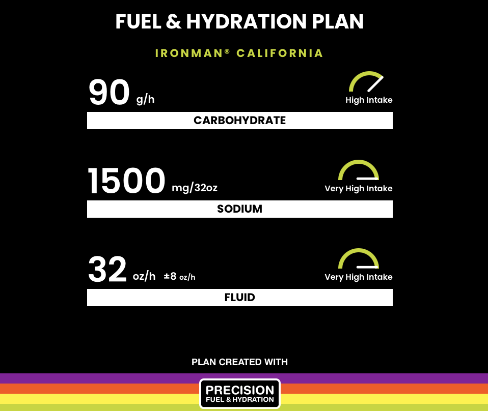 The deal also sees all of IRONMAN’s race events added to Precision Fuel & Hydration’s free Fueling & Hydration Planner. The tool asks for a few data inputs, such as sweat rate, sodium in your sweat, and your projected race pacing, in order to generate a specific carbohydrate, fluid, and sodium target per hour. I put in my inputs for the IRONMAN race I’ve signed up for in 2026, which came up with the following recommendation: