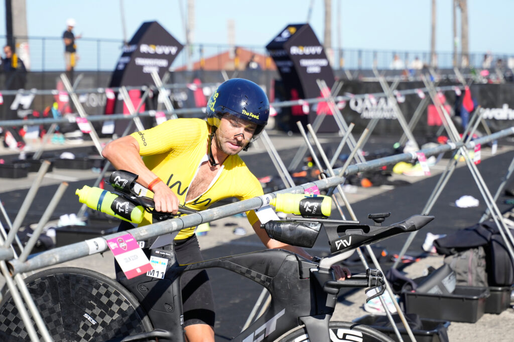 The men’s race would be a little more congested coming out of the water with 12 athletes all within a minute of each other. American Greg Harper grabbed first dibs of the boat ramp in a time of 22:48. Mega bikers including Lionel Sanders would come out in 26:00, which meant he would have more than 3 mins to make up.