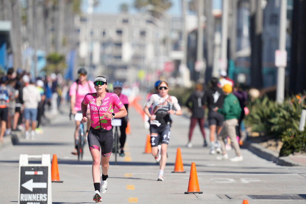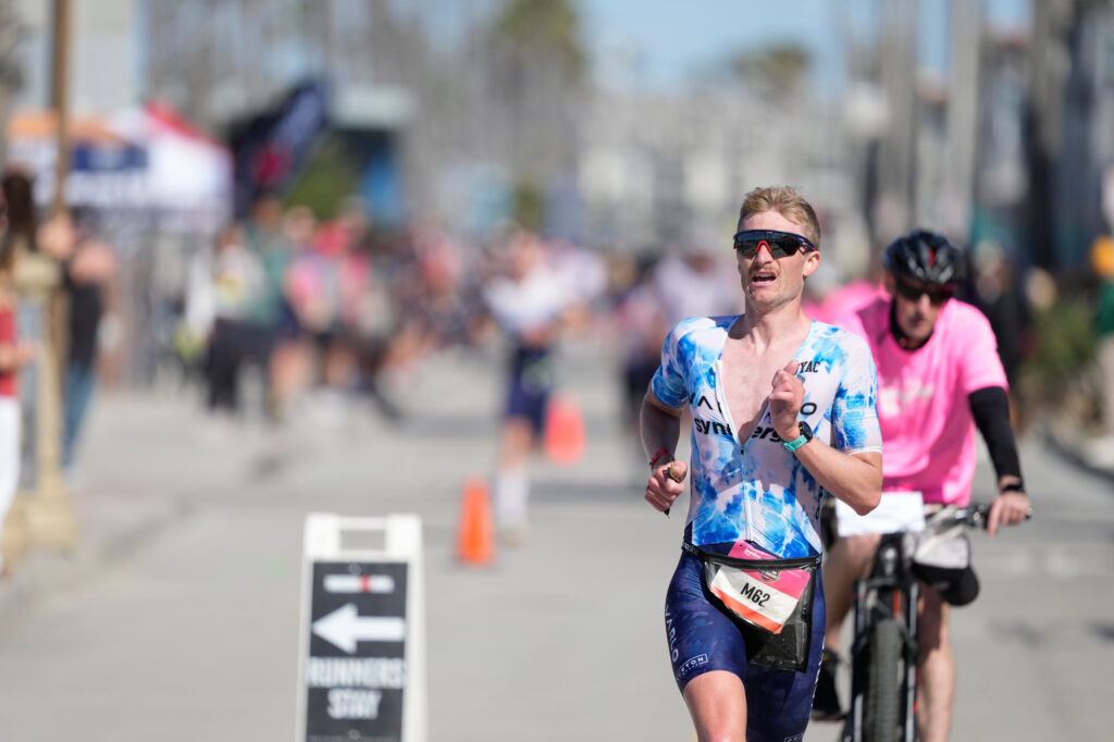 The run at Oceanside is always fun to watch. It’s a 3 loop course that allows for some great crowd cheering and split gathering. The men’s race was back and forth until Sanders decided that he was 100% going to be the winner on the day. He took that lead about mile 7 “ish” and, from that point on it was just the back of the pack trying to fight for the top 5.