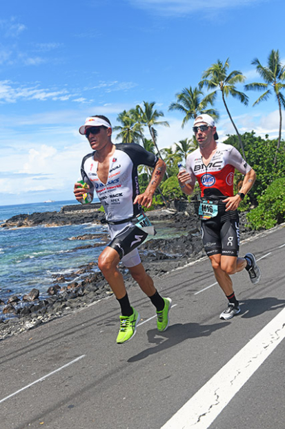 Braden Currie runs with Bart Aernouts on Alii Drive.