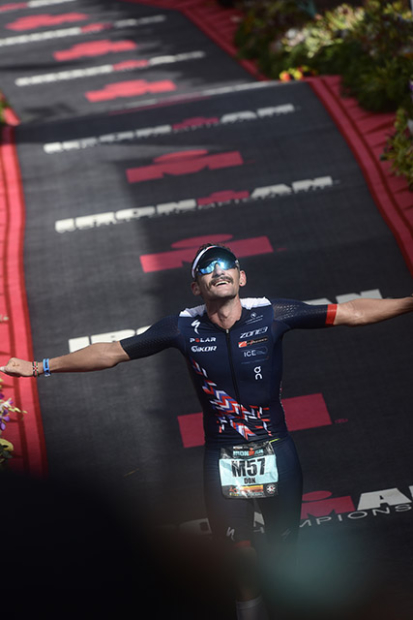 Tim Don has reason to celebrate his months-long recovery in a halo to support his neck – one year after his traumatic pre-race accident at Kona.