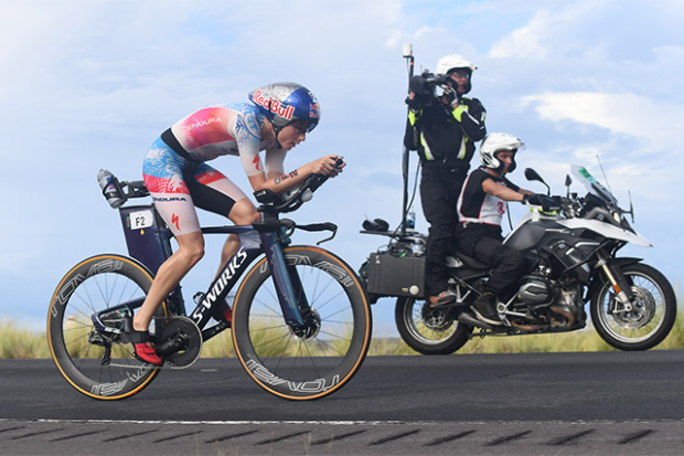 After recovering from jellyfish stings, Ryf took down the Kona women’s bike record with a 4:26:07. split.