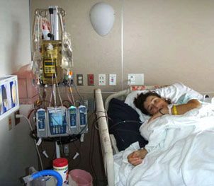 I was really sick and since they didn't know when the kidney infection started they were scared my heart might be damaged. They wanted to do an EKG – stick a tube down my throat to check my heart. That was one of the worst things ever. The first time when I woke up, there was a breathing tube sticking down my throat. When I woke up after the second surgery. There was a huge IV-catheter sticking in a main artery in my neck. When they removed it, they applied severe pressure for 20 minutes.