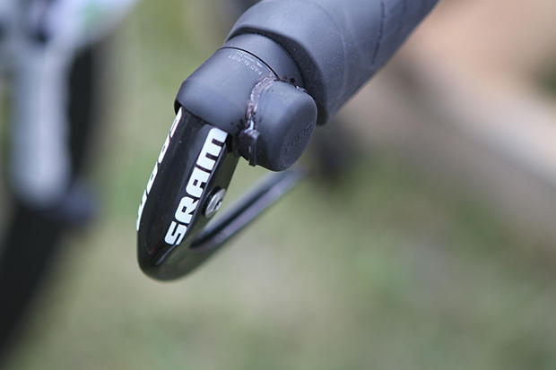 The Ergon arm pads, grips and extension covers are fantastic and feel great. Notice also the SRAM E-tap buttons on the base bars.