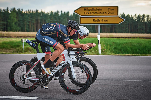 Jan Frodeno earlier this week during a training ride with his friend and training partner Nick Kastelein. Frodeno however is riding a Zipp disc wheel in Roth tomorrow.