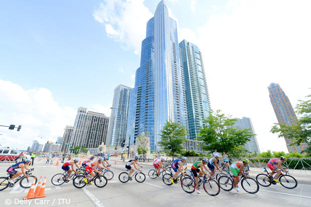 The race began with a swim in choppy, wind-swept waves in Lake Michigan where Gomez stayed in close touch with swim leaders Aurelien Raphael of France and Ben Kanute of the U.S. while Mola came across 25 seconds down, Pereira minus 27 and run threat Richard Murray 42 seconds arrears.