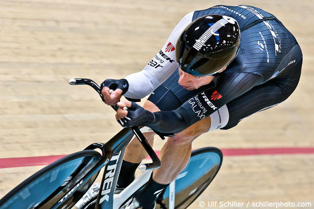 On the track in Grenchen Voigt looked very confident and did not go out too hard as some had feared from this hard riding German. Voigt was ahead of the record from the start and slowly edged away on his Trek dual disc equipped track bike as the Alphamantis' track aero system kept track of his effort in real time. Voigt reached 16.25 km in 19:32.5 minutes, was at 27.75 in 33:23.7 minutes and that is when he finally started to twitch a bit and adjust his position slightly. But his lap times on the 250 meter track were constantly under 18 seconds. After 38:32.4 minutes he reached 32 kilometers and 45:12.1 minutes in he had reached 37.5 kilometers. Voigt then cruised through the 40 kilometer mark in 48:15.7 minutes and after a few out of the saddle sprints in the last 10 minutes Voigt broke the record ahead of his own predicted distance.