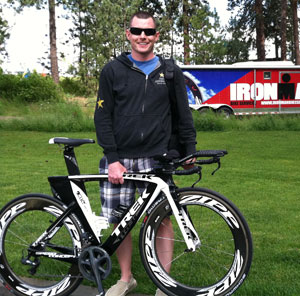 John: We got up to Coeur D’Alene on Thursday and had a great few days seeing the sights and previewing parts of the course. I also had the ability to get a feel for the water, which was quite a shock. I knew that they had a cold spring but wow that water was cold. The morning of the race I got down to transition around 5:15 and I gave my gear a once over before I headed down to the water to watch the pros and get in and try to get some water in my suit so it wouldn’t be such a shock to my system. I had a ton of confidence coming into this race thanks to coach Brian. I had never felt so fit before in my life even pre accident. He built an amazing program for me. I mean this guy is working with pro athletes who are wining huge races and yet he still found time to work with me and all the issues that come along with working with an athlete with challenges. I was very emotional prior to the start. I thought so much about the last couple of years and how this would most likely be my last Ironman unless I had qualified for Kona or something. When I decided to race Coeur D’Alene I just wanted to beat my time from last year but as my training progressed I started to feel like I could do more then take a few minutes off my time.