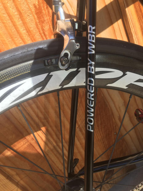 The cabling up front masks the WBR logo and the tagline "POWERED BY WBR," but the bike still sports a clean profile.
