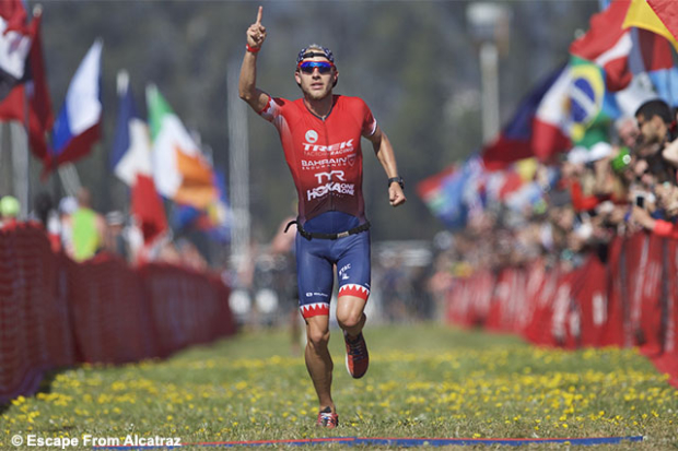 After a fast swim thanks to unusually calm waters in San Francisco Bay, Ben Kanute exited the water with Cameron Dye close by. “I had to grind the whole race with Cam on my heels," he said. "The Escape from Alcatraz Triathlon is a hard course.”