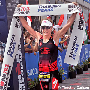 Surely the former internationally ranked 3000-meter steeplechaser did feel good as she posted a race-best 1:21:37 run split, and finished in 4:20:07. Hauschildt finished with a 5:12 margin of victory over fast-closing Heather Jackson, who advanced from 6th at T2 to the runner-up slot. "I've finished this race in 5th, 4th, 3rd and now 2nd," smiled Jackson, who called upon a poker metaphor to define her ambition. "I'd really like to complete a five card straight next year."