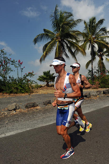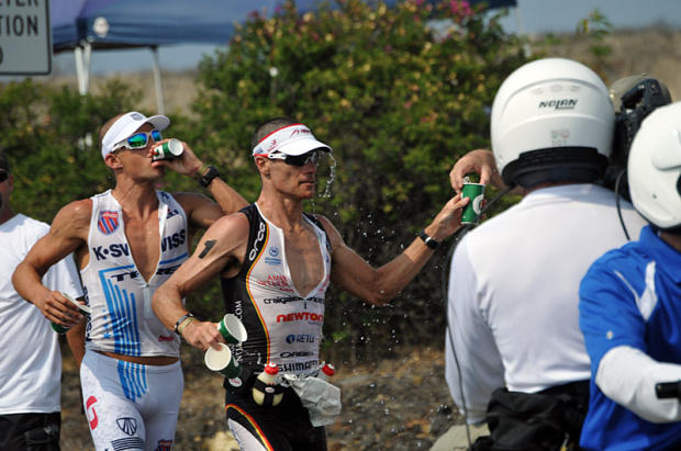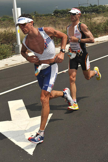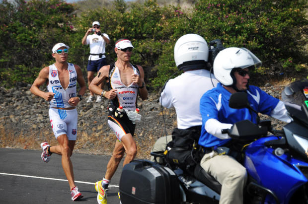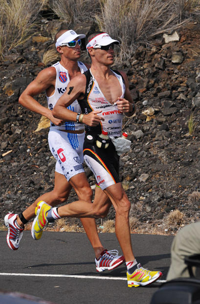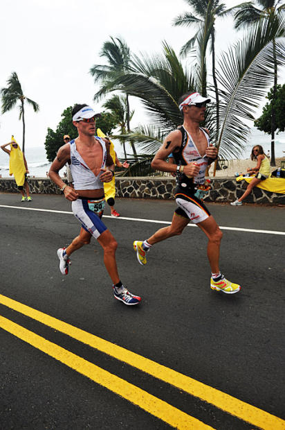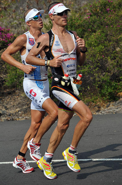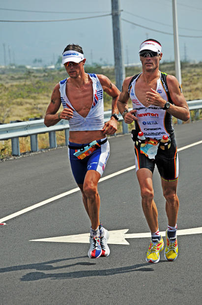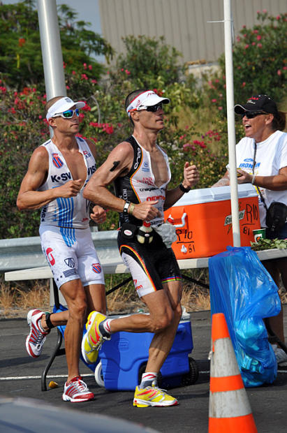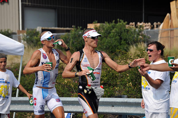 They went through aid stations in synch, reviving memories of the Mark Allen-Dave Scott IronWar duel 20 years ago.