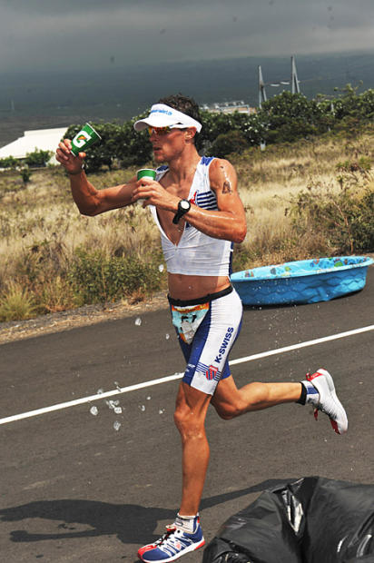 Crowie kept his cool all the way to the turnaround on Alii Drive, 5 miles into the marathon. Here he trailed Lieto and Chris McCormack.