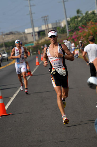 Crowie's beautiful stride eats up ground on this first stretch along Alii by the sea. At this point he was 7-8 minutes back of Lieto, but fearsome runner Andreas Raelert was about arrive and challenge Alexander's crown.