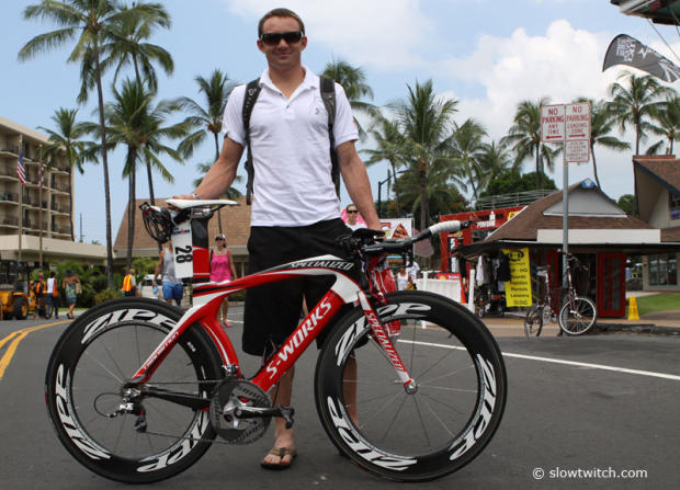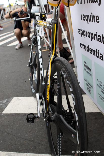 Andreas Raelert's new Blue Triad SL ride for Kona 2010 is about to get checked in.