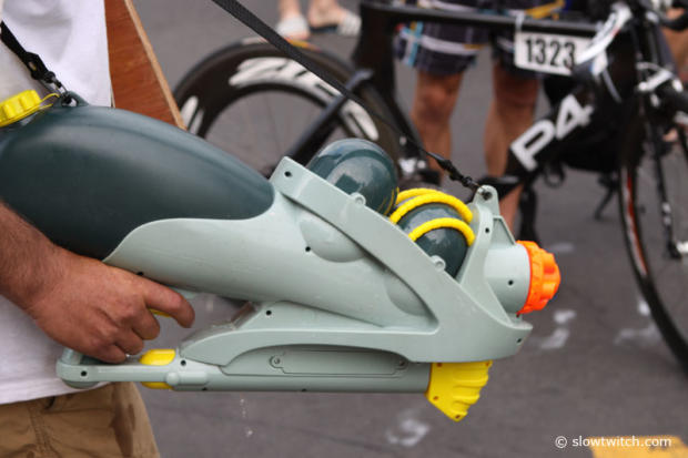 This worker/volunteer used a water gun to clear the path when coming through with larger objects.