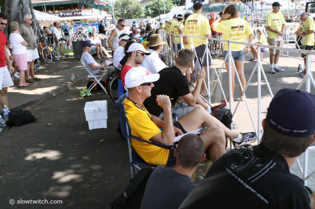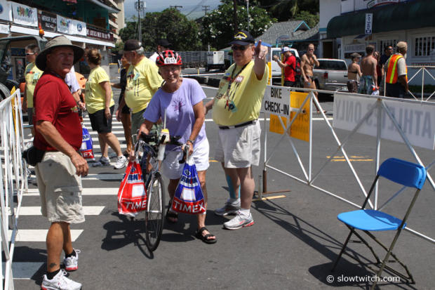Friday is the bike check in day in Kona and like every year some folks line up early to drop off their bikes. We were there to capture a few impressions during the hours between noon and 5pm.