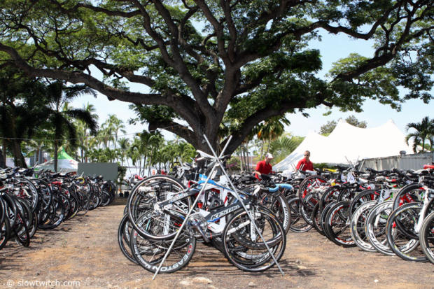 The TriBikeTransport bikes have arrived in Kona and await their owners.