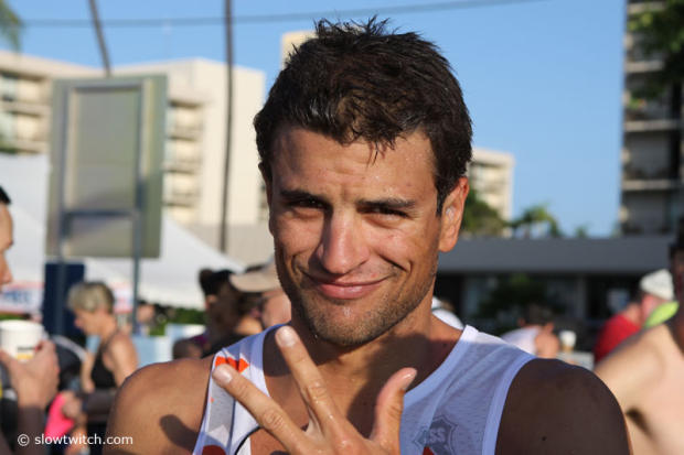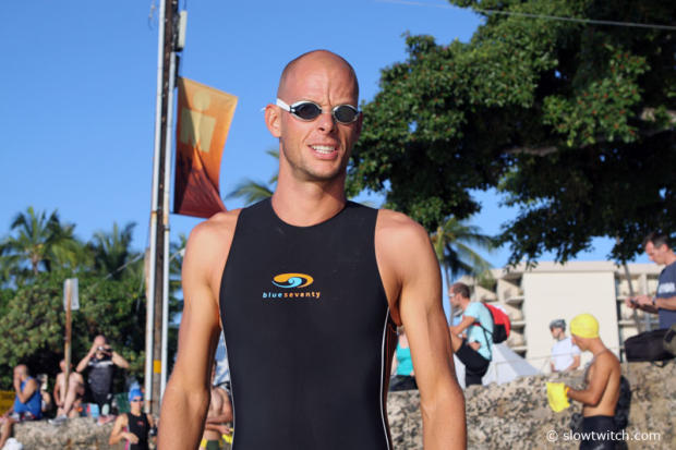 Dirk Bockel now one of the favorites in Kona about to get into the water.