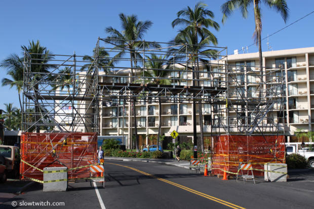 In case you wonder, the finish line in Kona hasn't been moved, this is a new pedestrian overpass.