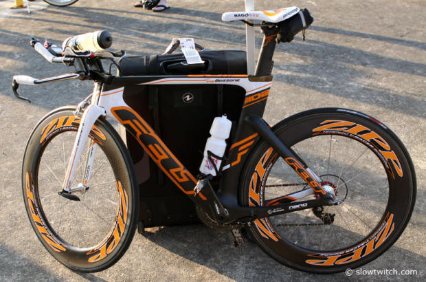 A replica of Fraser Cartmell's race rig in the Trek / K-Swiss compound.