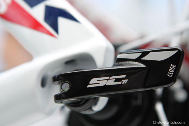 A closer look at the nice attention to detail on the Trek Speed Concept skewer. Once closed it becomes a nice extension of the dropout.