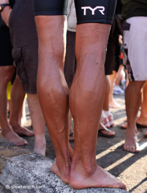 Most male athletes would be glad to have ripped amazing legs like Chrissie Wellington. Seen here during an interview with Timothy Carlson.