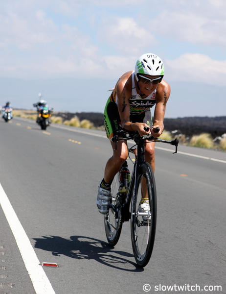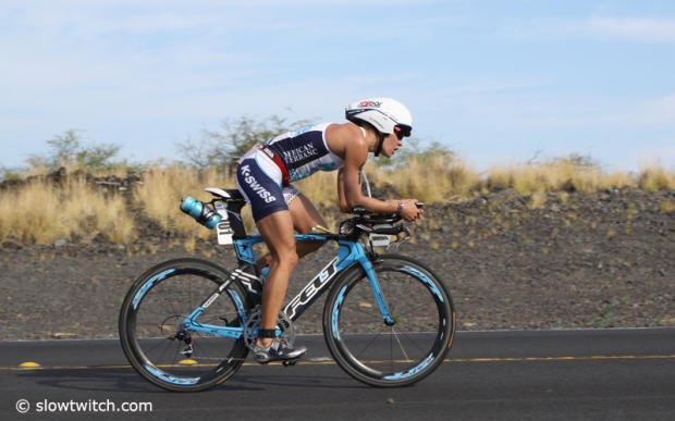 Julie Dibens had an amazing bike ride in Kona but would not finish the race, hampered by a foot injury.