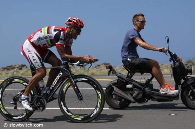 Early in the morning we saw Frederik Van Lierde head out on a motor pacing session.