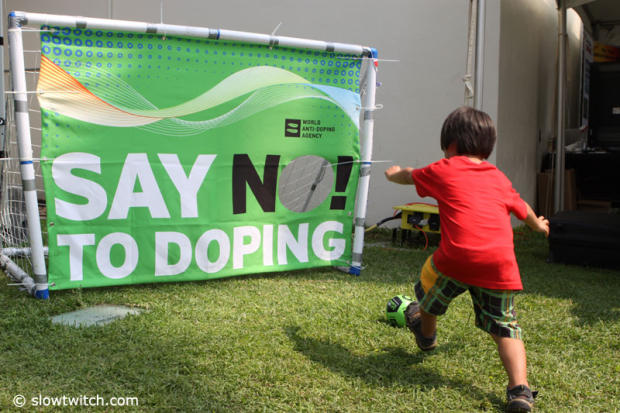 With vigor for the right cause. A big booth in the expo is dedicated to a clean sport.