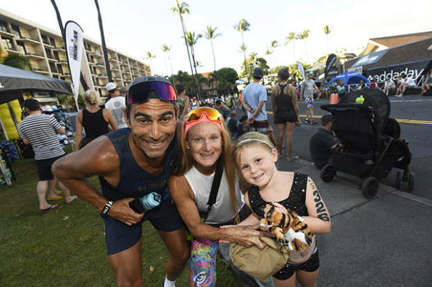Two-time 4th place Kona finisher Joanna Lawn of New Zealand with her husband Armando and daughter.