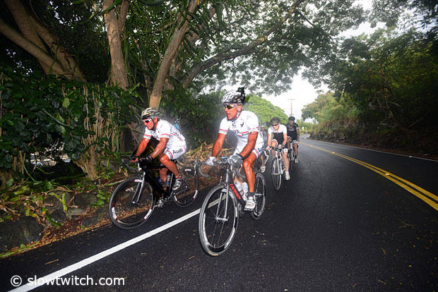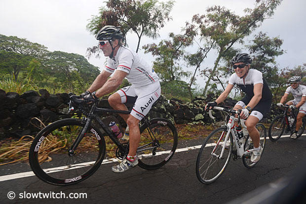 Dan Empfield and Herbert Krabel have provided me with the opportunity to contribute to Slowtwitch.com on the topic of triathlon lifestyle. Cool workouts, training around work, jobs, kids, epic workouts, cool places to travel to for triathlon and triathlon related adventures are some of the areas we’ll try to cover more actively. Stuff that most age groupers live and breathe. So what better first subject to cover than one of the hardest rides in Hawaii, in the words of none other than Chris Lieto. Dan Empfield, decided that he wanted to round up a group of athletes to go from sea level to 5100 feet above sea level in one shot on Wednesday before Ironman Hawaii. Needless to say, the ride would be populated entirely by non athletes or should I say, by athletes not participating in Saturday’s Ironman World Championship event. Given its severity the likelihood of athletes competing in Saturday showing up to ride was almost zero.