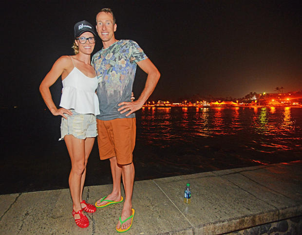 WTC CEO Andrew Messick and Paula Newby-Fraser confer after helping the kids swim.