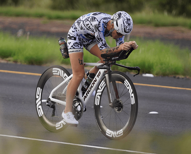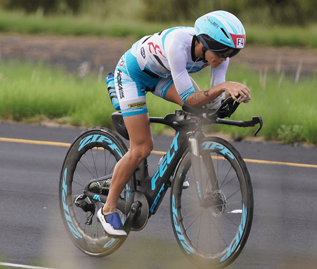 Lauren Brandon could not ride Charles-Barclay's pace and after the left turn at Kawaihae Charles-Barclay looked to be keeping her gap from everyone, with a more-than-5min lead on Annie Haug, Imogen Simmonds, Sarah Crowley and Carrie Lester. One difference is Charles-Barclay is her much more refined bike position about her Shiv Disc.