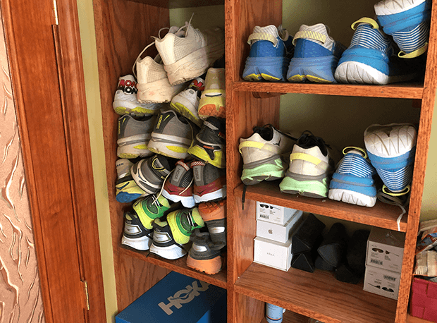 You and I need the necessary apps for remote office work. (I’ll get to that.) And, the space for our work tools. Above is a bunch of cubbyholes, some of which are occupied by all the historic HOKAs, so I can weigh and measure them, which the HOKA folks probably prefer I didn’t do as I waterboard them on why the new Bondi is heavier than the old Bondi. Below is my workshop, where I build bikes, ride them, and just about when I’m starting to like them I have to ship them back.