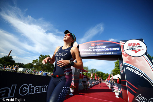 Justin Lippert of Middletown, New Jersey and Rachel Mensch of Madison, Wisconsin won the overall titles at the USA Triathlon Olympic distance Age Group National Championship at Edgewater Park in Cleveland, Ohio today.