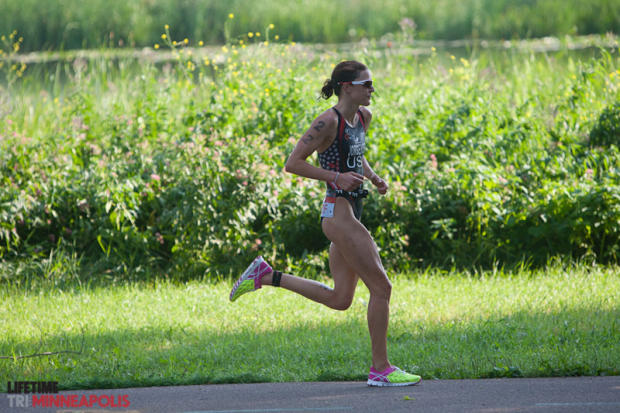 Gwen Jorgensen had the fastest run and finished second.