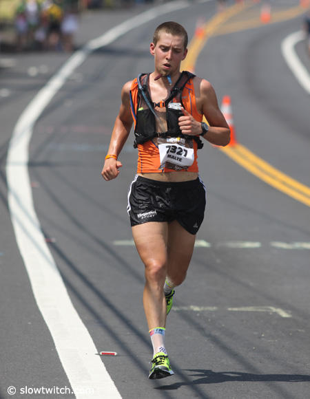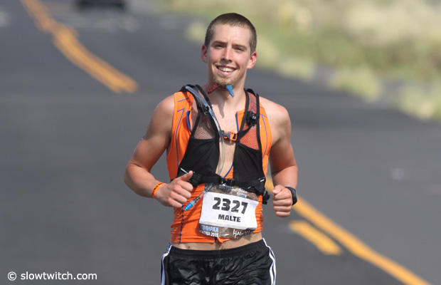 Malte: I took the lead the first time at mile 3, but got passed by Daniel Stubleski at mile 5 and he took off. At some point out on Queen K I realized that he couldn't pull away from me, even though I walked and refueled in all the aid stations, so I decided to kick it and catch him. After I got him I managed to stay ahead for the rest of the race.