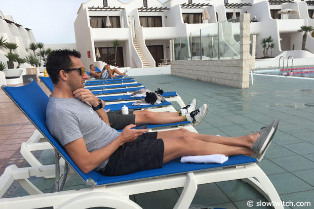 Marino: Sometimes I already gained 4 or 5kg by the time I stepped off the plane from Kona. I never hunger myself and I am actually quite ok food wise. There are some people who question my food habits but I am happy with it. Of course there are seasons during the year where you eat a little healthier, or a little less healthy. But if you push your body that hard for a long, long time before the race, sometimes after hard sessions and during tapering I gain 2-3kg. I mean you do not do anything for 2 or 3 days and my body just got the idea, now you get some reserve. When I was 20 I did not gain a kilogram, when you are 30 it is 5k, and now I am 38 and if I don’t pay attention it is more than 10kg, and that is what happened. But I don’t think it has to be a bad thing. There is a reason why your body does that. There is a reason it did not do that when you were 20, and there is one why it does it when you are 38. But I am not worried. Every training session I am doing here in the Lava fields of Lanzarote I leave ½ a kilogram behind.