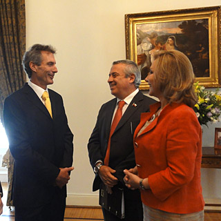 Mark: After the meeting, we went to the second floor of the Palace de la Moneda, which is where all the real stuff happens. We went into a big room and while we were standing there this massive group of TV and radio guys with cameras raced up the stairs. It was a herd of 50 or 60 media people. I asked ‘Who were they there for?’ They told me “They are here for you!’ I thought ‘OK. Right on.’ The First Lady Cecilia Morel spoke a few words about the national health campaign. Then I said a few words and then the President went into more detail about it all. It was totally wild and really cool that they recognized me and the message Brant Secunda and I have been trying to out there. Not to talk simply about how to train and race triathlons, but reaching out to a