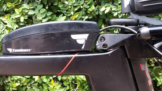Some handy work by Hanson to ensure his nutrition storage box sits snugly behind the stem.