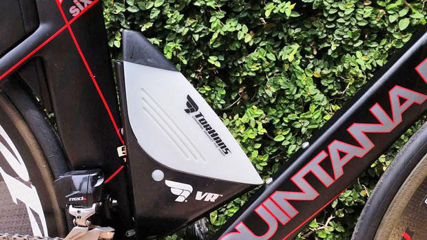 Another Torhans aero hydration bottle bolted to the frame so Hanson does not comprise his fueling strategy or aerodynamics.