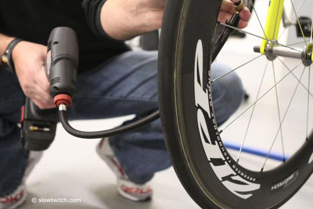 Mike Giraud works with bikes in the tunnel so often, he could do the setup most likely blind folded.