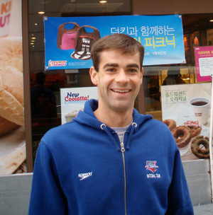 Timothy: To be honest I have a HUGE sweet tooth. I LOVE donuts, especially from Dunkin’s. I could eat my weight in ice cream and cake too! I do my best to keep it in moderation and for the most part I do a good job. I actually had a HUGE brownie the night before the race, the other athletes looked at me like I was crazy but I guess it works! My favorite meal is peanut butter, honey and bananas on a toasted bagel…very addicting. My homestay was in awe when I ate three of them one day! There isn’t much I don’t like, I just can’t eat anything that is remotely spicy…I start sweating like crazy!