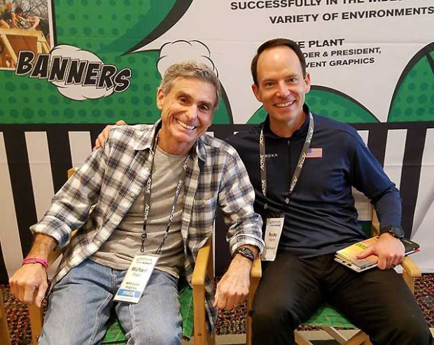 [PHOTO: Top image by Timothy Carlson; lower image is of Mike Plant and USAT CEO Rocky Harris at the 2018 TBI Conference.]