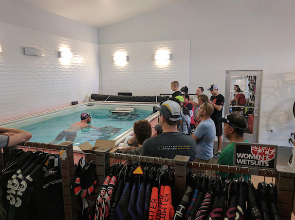 After stretching, Garza put Tri Shop's Endless Pool to good use and showcased bad habits swimmers should look to avoid in the water.